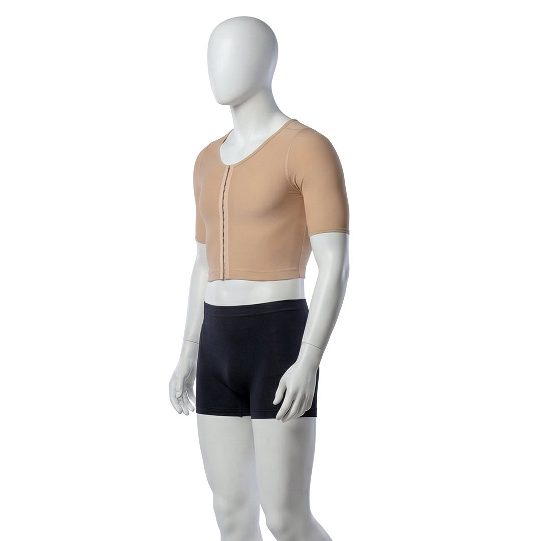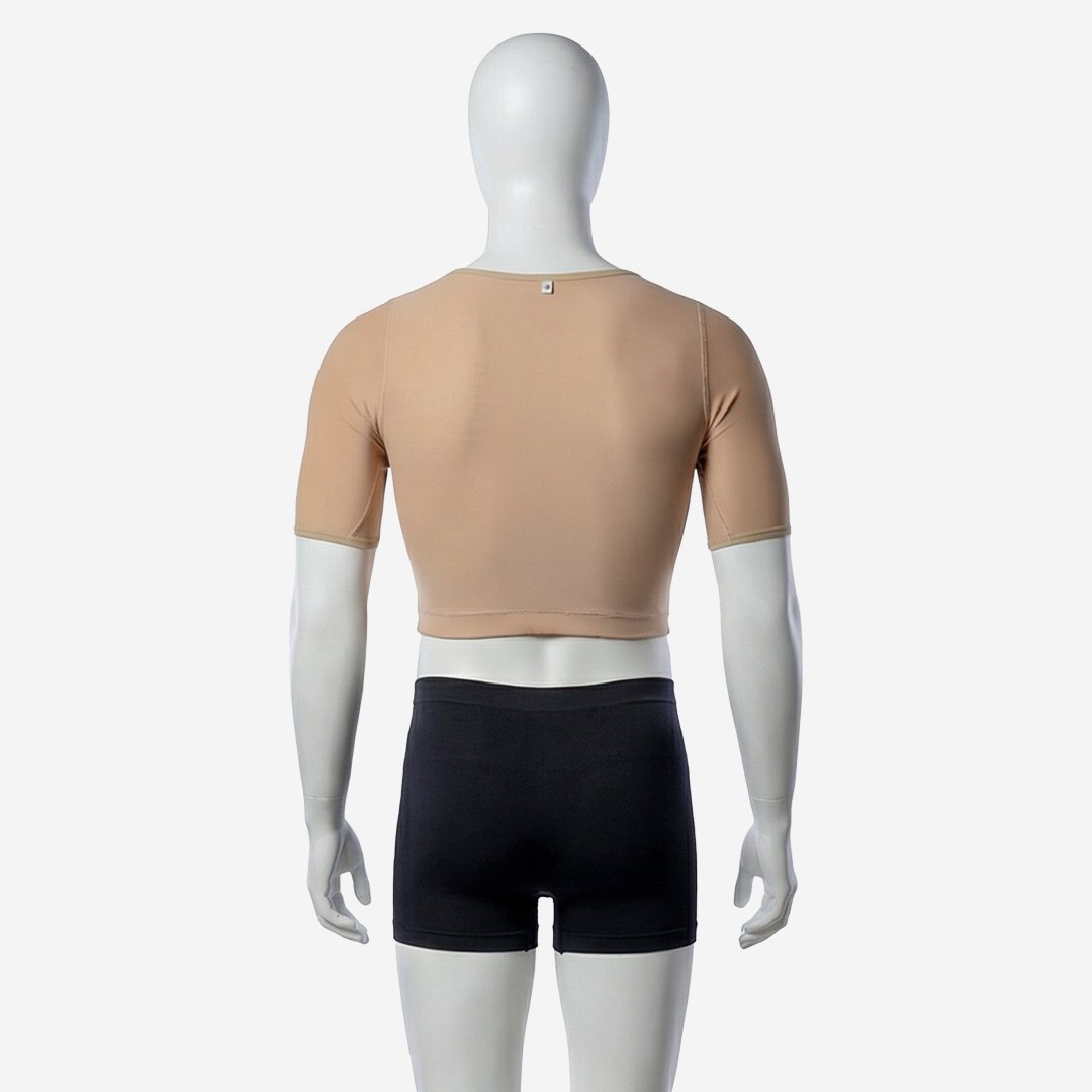 A short half-arm vest designed for liposuction is a post-surgical garment made from comfortable, breathable fabric. It offers support and compression to the upper arms and torso, helping to reduce swelling and improve contouring after liposuction. The vest provides partial coverage with a design that supports recovery, promotes skin tightening, and ensures ease of movement during the healing process.