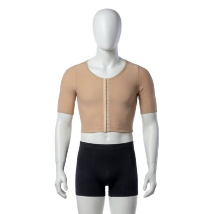 A short half-arm vest for liposuction is a post-surgical garment made from comfortable, breathable fabric. It provides support and compression to the upper arms and torso, helping to reduce swelling and improve contouring after liposuction. The vest offers partial coverage, promotes skin tightening, and ensures comfort and ease of movement during recovery.