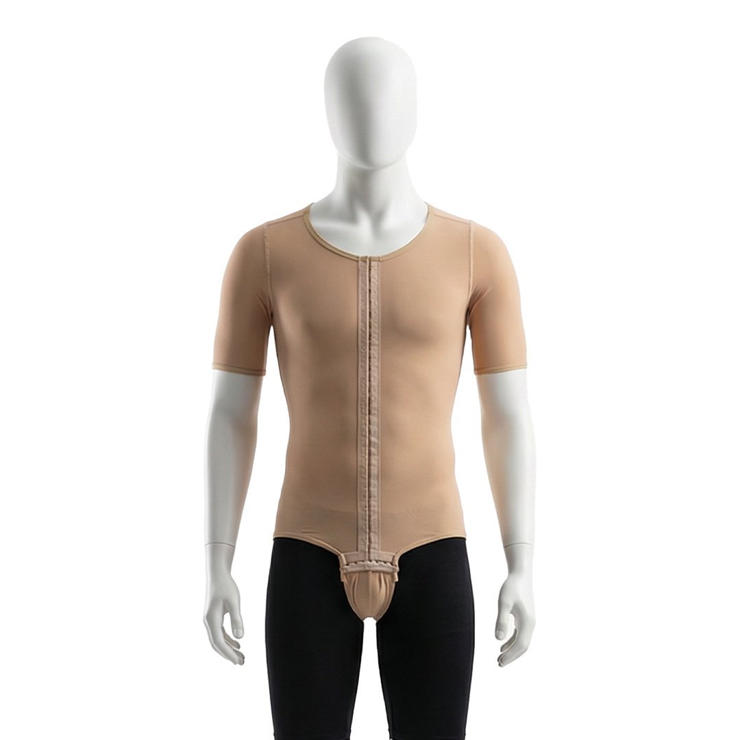 A short sleeve vest for liposuction is typically a compression garment designed to provide support, reduce swelling, and help contour the treated areas during recovery. These vests are usually made of breathable, stretchy materials like elastane or nylon and are often used in post-operative care to ensure proper healing and keep the skin tight.